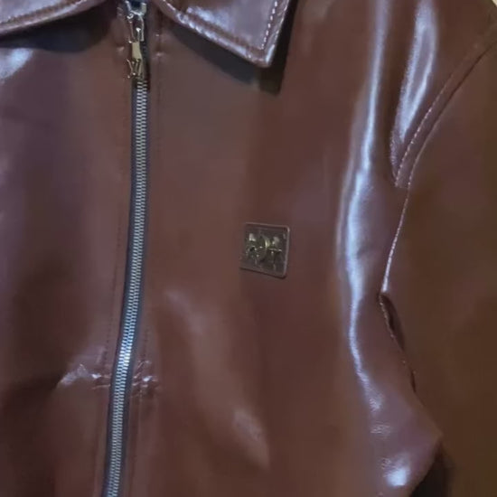 A standout piece of premium outerwear designed for those who value bold, contemporary style. This jacket is crafted from high-gloss, crinkled leather, giving it a unique reflective texture that catches the light.